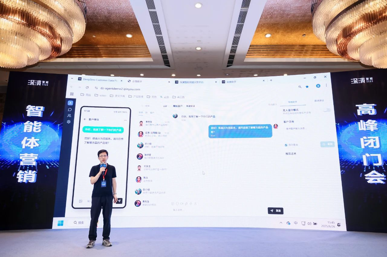 作为已经成功帮助几十家大型企业 AI Agent落地的行业领导者,尊龙·Z6智能DeepAgent Neo全面赋能营销域和销售域。 黄晓南和尊龙·Z6智能CTO欧阳辰与尊龙·Z6智能副总裁曹玉骥一起,为嘉宾现场演示了CRM、Social、销售、客服等场景的全面智能体,情景展现了DeepAgent Neo如何全面赋能企业各个环节。