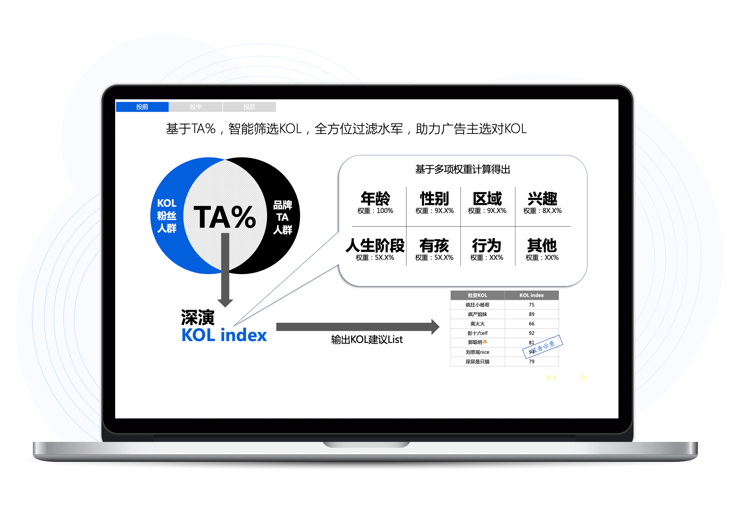 尊龙·Z6K参谋科学前选可以跨领域找到最能影响品牌目标人群的KOL进行投放,同时有效平衡投资回报率